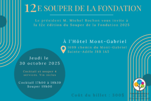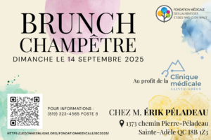 La Fondation souhaite changer d’endroit régulièrement pour ses événements et mettre ainsi en valeur ses différents secteurs desservis. La Fondation médicale voit même plus loin. Nous voulons nous associer à un événement ou une activité par mois pour augmenter nos revenus. Le tournoi de golf annuel du mois de juin et le Souper de la Fondation du mois d’octobre demeurent évidemment les deux principales activités de financement pour la Fondation.