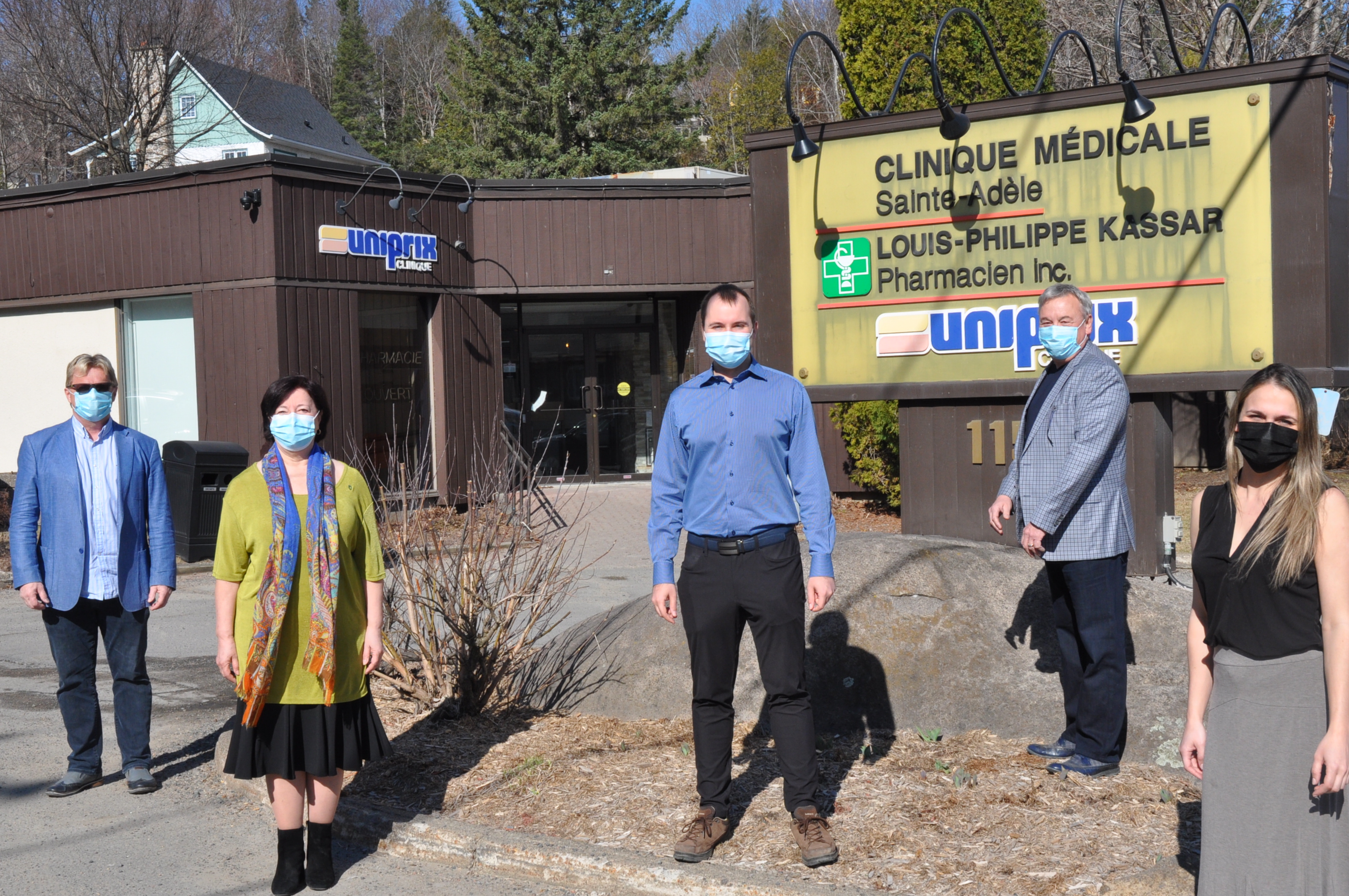 M. Daniel Desjardins dg de la Fondation médicale, Mme Monique Éthier présidente de la Caisse Desjardins de La Vallée des Pays-d’en-Haut, Dr Philippe Melanson médecin gestionnaire de la Clinique, M. Michel Rochon président de la Fondation médicale et Dre Geneviève Gauthier médecin gestionnaire de la Clinique.