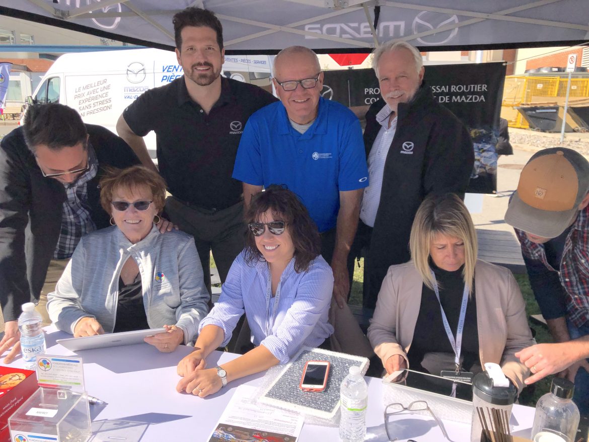Sur la photo: Les participants étaient bien accueillis par l’équipe Mazda et la Fondation. Rangée avant : Sylvie Gervais de la Fondation ainsi que Josiane Blais-Lépine et Marie-Claude Tremblay de Mazda Val-David. Rangée arrière : Alexandre St-Vincent de Mazda Canada, Éric Busque de la Fondation et Normand Blain, propriétaire de Mazda Val-David.
