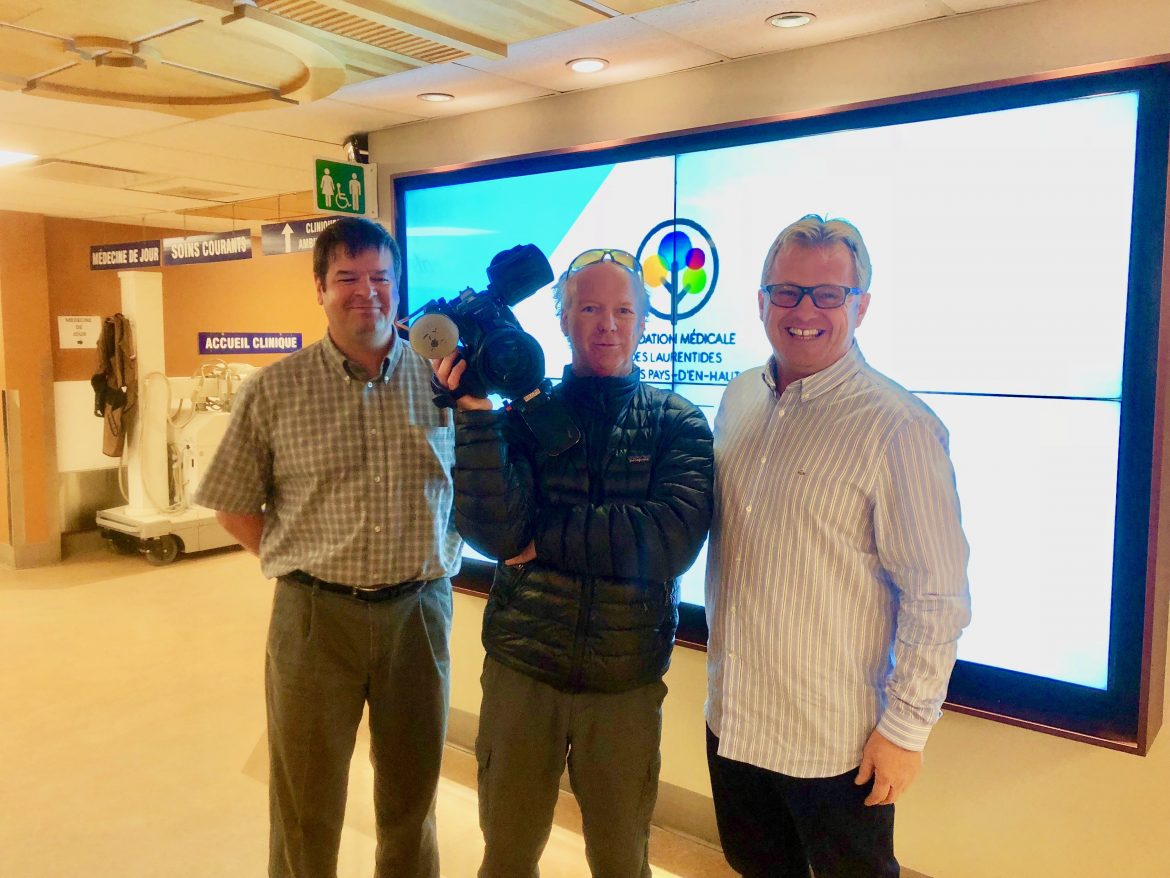 Sur la photo, François Ferland de CL Innovations, Guy Fradette de Productions Guyf, qui a réalisé les vidéos de la Fondation qui seront sur le mur, et Daniel Desjardins, directeur général de la Fondation médicale des Laurentides et des Pays-d’en-Haut.