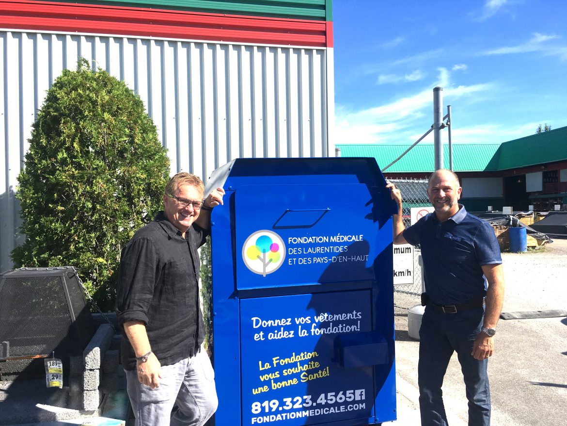 La Fondation médicale des Laurentides et des Pays-d’en-Haut innove encore une fois en installant de nouvelles cloches de récupération de vêtements pour alimenter son comptoir familial (Trésors de la Fondation).