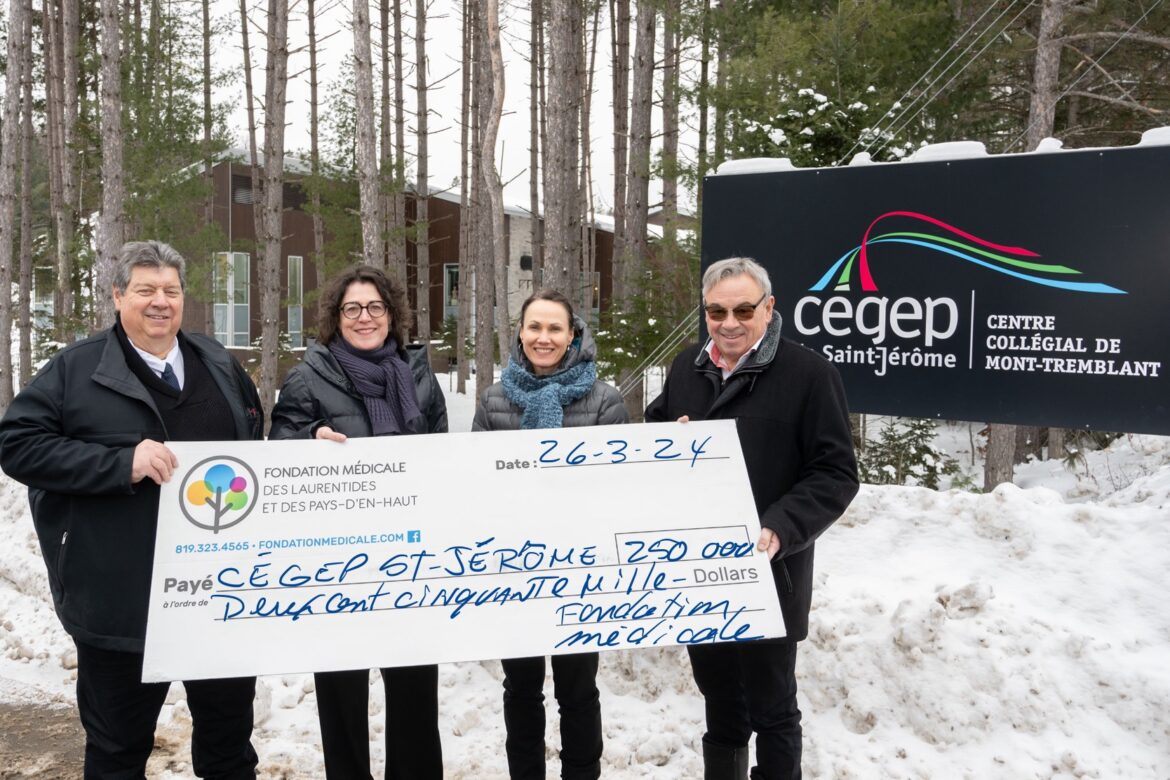La Fondation médicale des Laurentides et des Pays-d’en-Haut annonce fièrement un don exceptionnel pouvant aller jusqu’à 250 000$ au Centre collégial de Mont-Tremblant, campus du Cégep de Saint-Jérôme, pour l’acquisition d’équipement destiné à soutenir l’implantation du tout nouveau programme de techniques de physiothérapie. Dans les années futures, la Ville de Mont-Tremblant contribuera également à cette initiative en mettant à disposition les locaux nécessaires pour l’enseignement du programme.